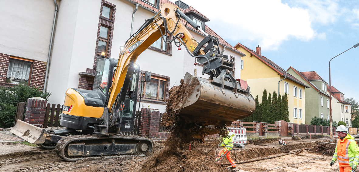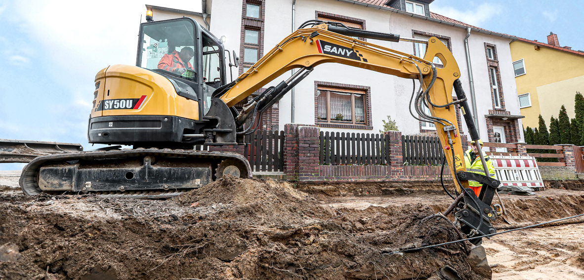 Brzi pogled unazad –  radovi na iskapanju pored prepreka? Nema problema za SANY SY50U. S kompaktnim rovokopačem s kratkim repom možete uživati ​​u najvišem stupnju manevriranja, kao i neograničenoj rotaciji.